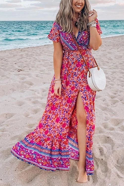 As for this V neck floral maxi dress, not only do I love the floral print and the long, sexy slit, but I also love how stretchy and comfortable it is. it makes you feel like a beautiful bohemian goddess.