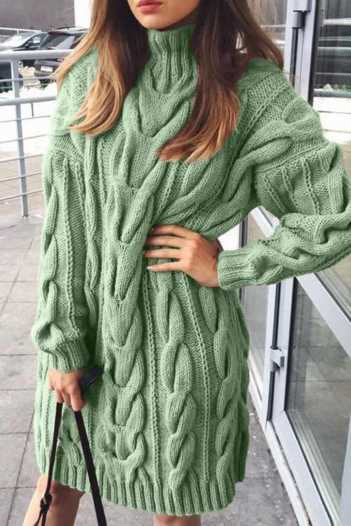 The Cable Knit Dress is a winter classic and a yearlong favourite. With beautiful cable detail across the front and a high turtleneck style, this dress can be worn across all seasons. The mid-thigh length is perfect for styling with ankle or knee high boots. Fits true to size. Size up if you would like a loose fit.