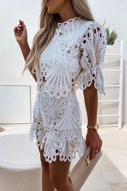 Get ready for the summer with our must have luxury premium crochet lace short set muses! Featuring a luxury crochet lace material, cropped sleeves and flattering tailored shorts we are obsessed. Style up with our strappy heels and woven clutches for the perfect summer night out fit.