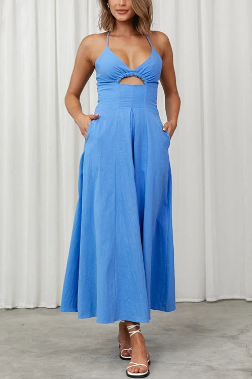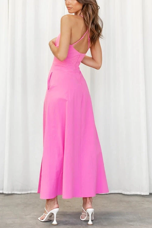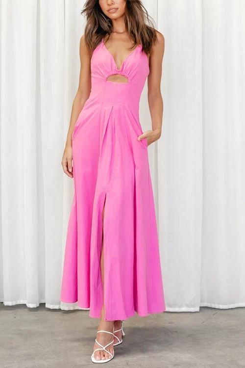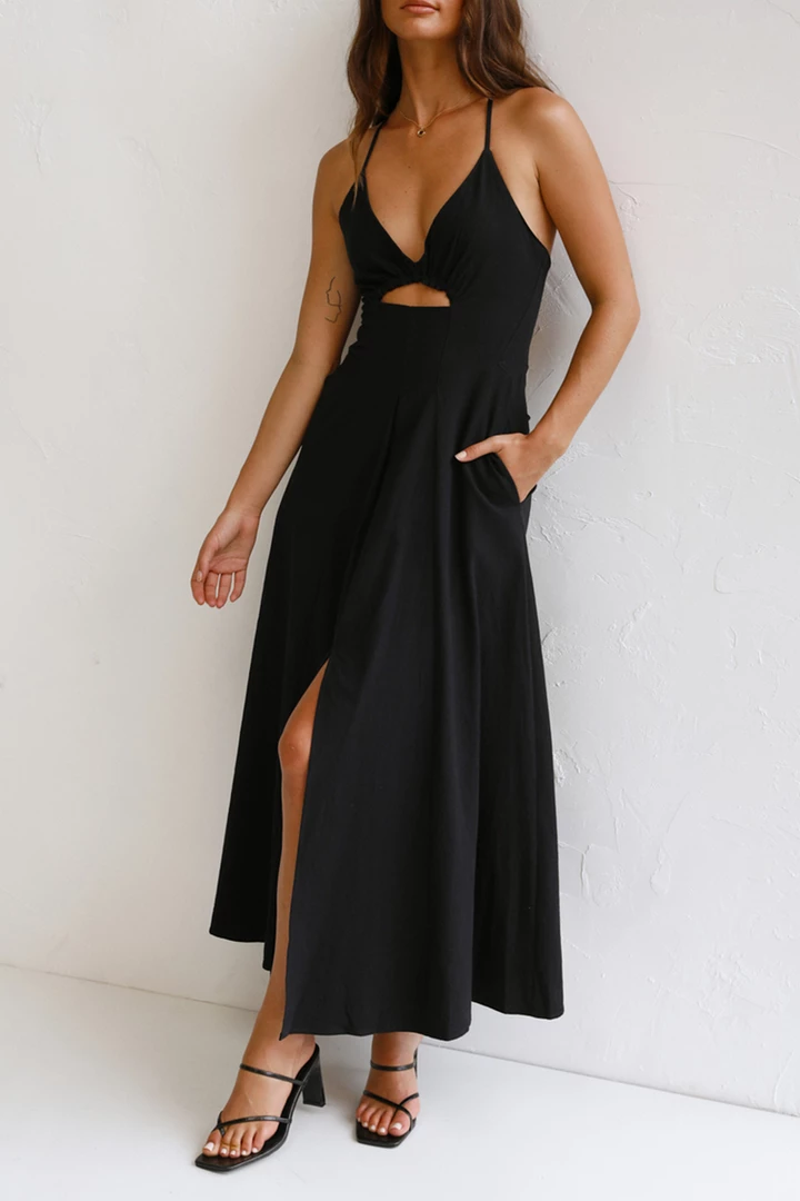 There’s something special about a summer maxi and our Maxi Dress is no exception. Featuring adjustable crossover straps, a triangular bust with cut out detail and sexy front slit – this design will make you stand out this season! – Adjustable crossover straps – Triangular bust with cut out detail