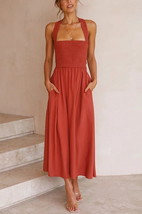 Step out looking and feeling fabulous in the Sweeney Midi Dress! Perfect for any upcoming events you have planned! �Straight Neckline �Elasticated Shirring Bodice �Tie Back Closure �Functional Pockets �Stretch �Not Lined