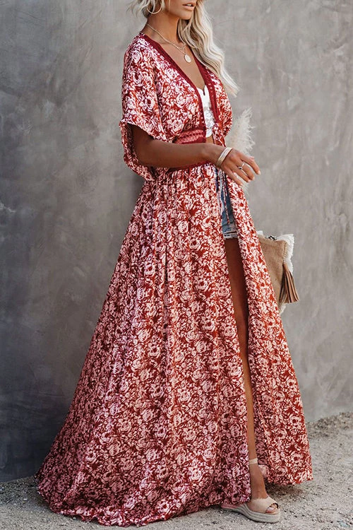 •Lightweight, breathable and comfy in a sheer printed silhouette •If you’re in the mood to make a splash and up your bold factor, this animal print kimono is the perfect choice •Tap into your wild side with this fun kimono which features a fun print with a floor-length hemline •Duster kimono is perfect to lay on the vests and bikinisÂ