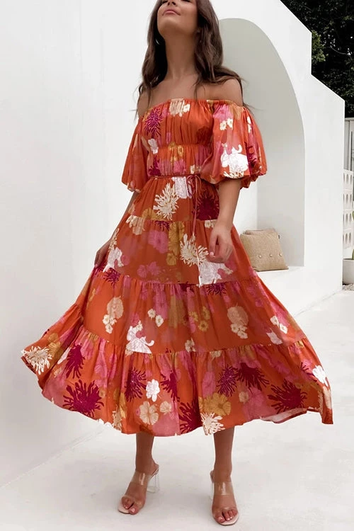 CAN BE WORN ON OR OFF THE SHOULDER, The stunning Maxi Dress is a must have addition to your maxi collection, with it’s beautiful print. This flattering relaxed style, is perfect for picnics or day time events!Â