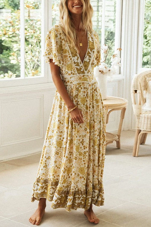 You need to know the truth about this maxi dress… We think it’s perfection! That mix of retro floral prints is so much fun! The little fluttery sleeves and side slit give this maxi just enough sassiness too! This maxi dress is going to be beautiful for any date night or summer wedding! This maxi dress features a v-neck, zip back closure, a button keyhole back, mixed floral print, a side slit, and crochet trim.