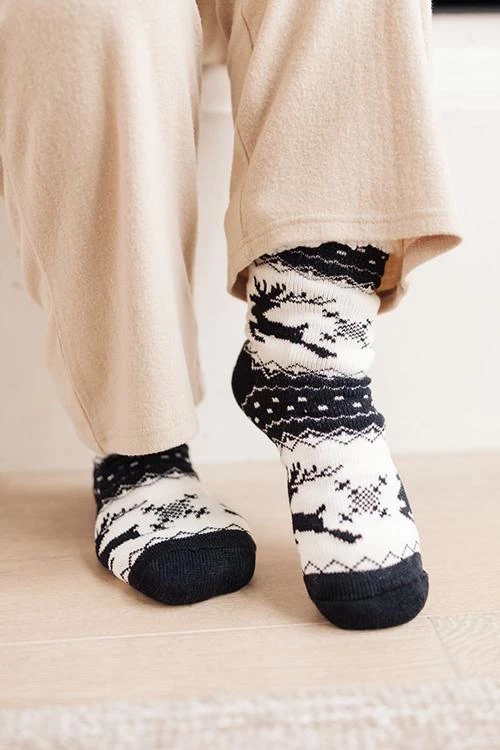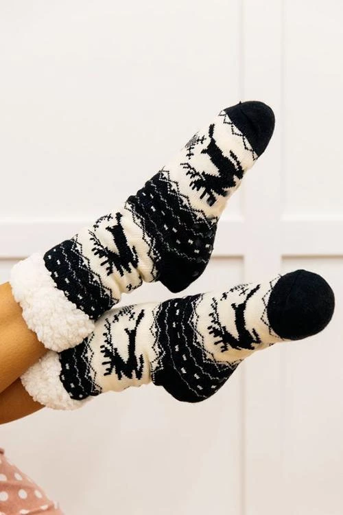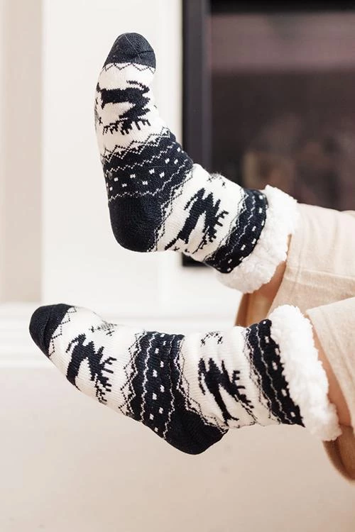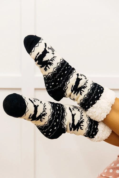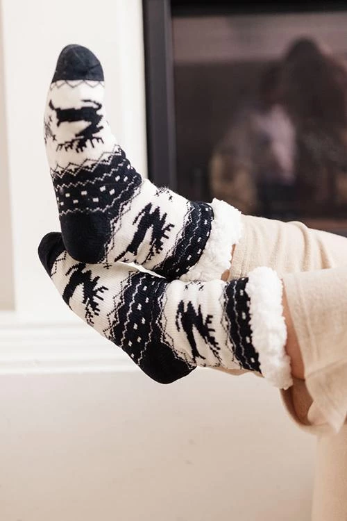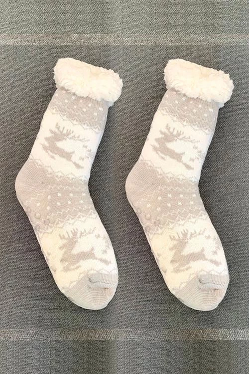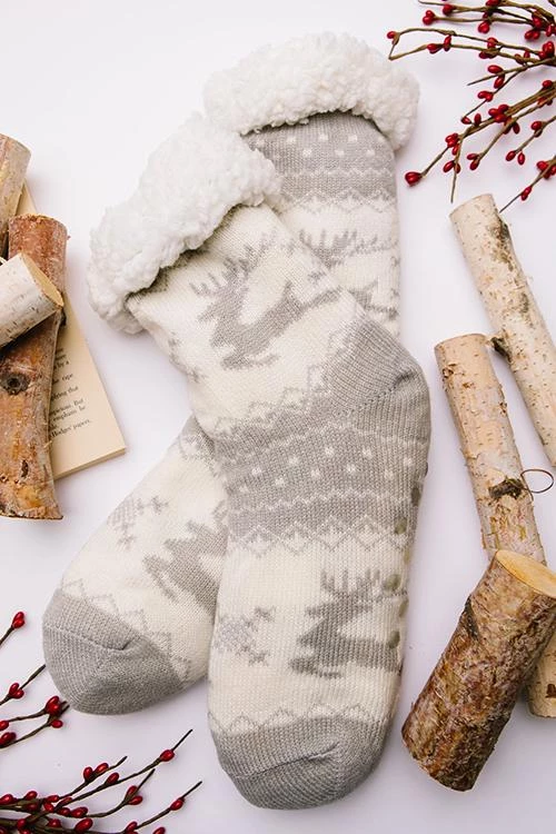 Keep those toes cozy in the super soft Fuzzy Holiday Socks! These Gray printed socks have a darling holiday print and are fleece lined for extra comfort.