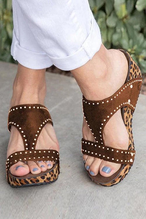 Be the first to review “Levency Leopard Peep Toe Studded Slide Wedge Sandals New In” Cancel reply
