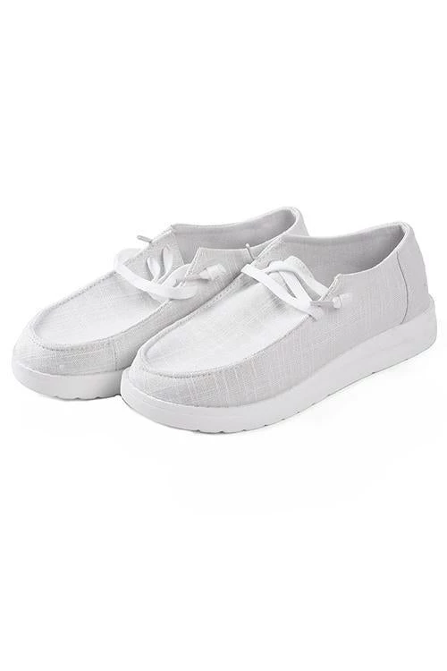 Low cap casual shoes that are VERY lightweight and comfortable! They are canvas, so they will stretch out some. I wear mine with low-show socks.