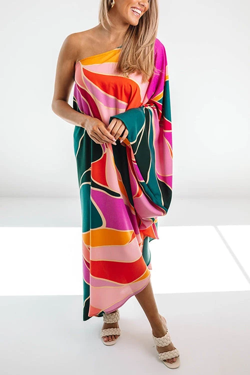 Do you Dare To Love this dress as much as we do? I mean, if you’re up for the challenge, we won’t stop you from trying on this modern dress… Let’s be honest, you’ll definitely be the most stunning in the room that we’ll fall in love with you, fashionista. Raise a glass and toast to how good you look in the Capri Maxi Dress! Sleek patterned fabric creates a draped bodice with a one shoulder flutter sleeve and asymmetric hem. Flattering on any body type!!