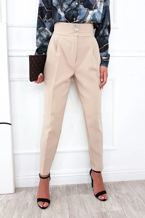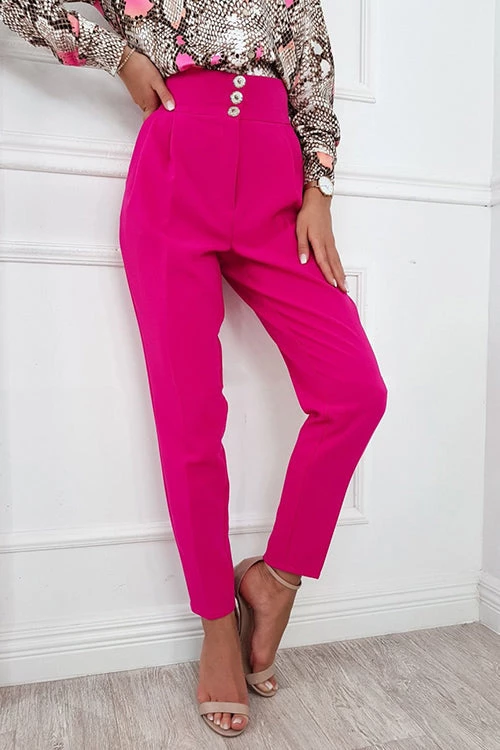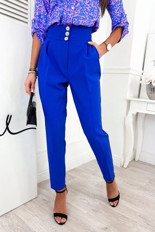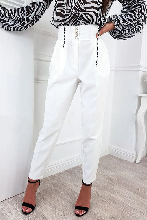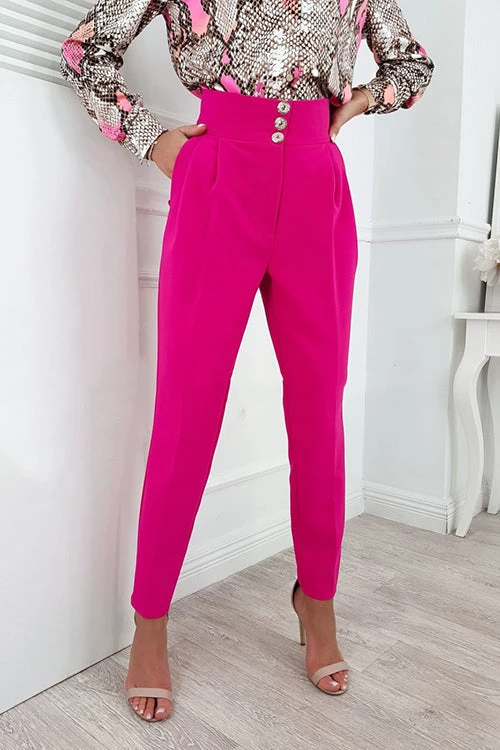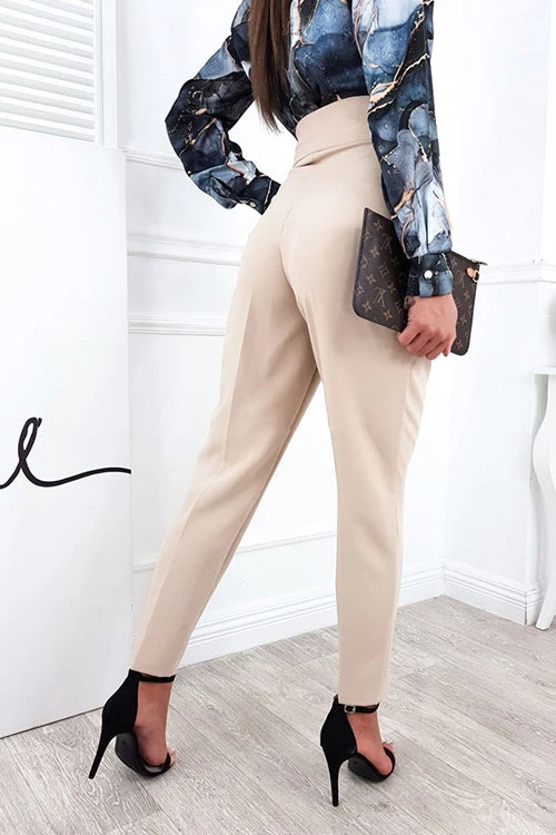When you’re not busy conquering the conference room, kick back in the High-Waisted Trouser Pants! Sleek woven poly constructs a high, button waist, pleated accents, and diagonal front pockets. Relaxed pant legs taper at an ankle-length hem.