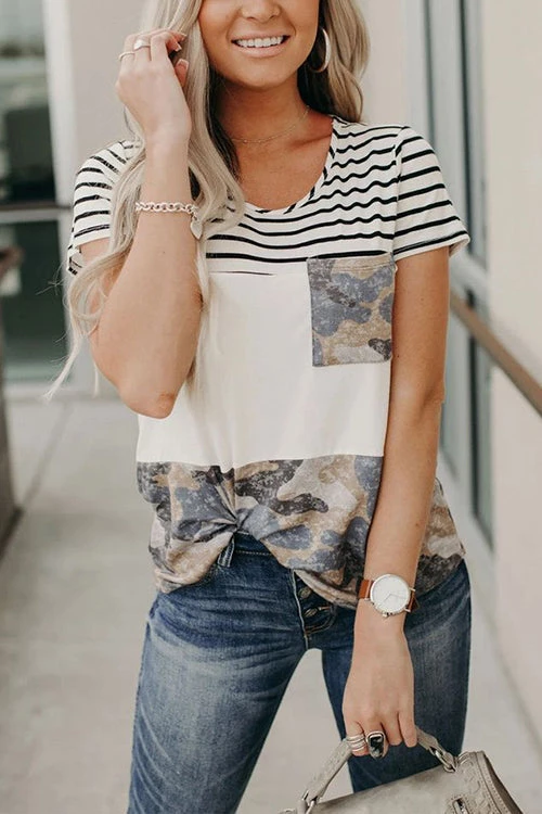 Available in a range of striped and camo color block, this T-shirt can be the casual style for most occasions