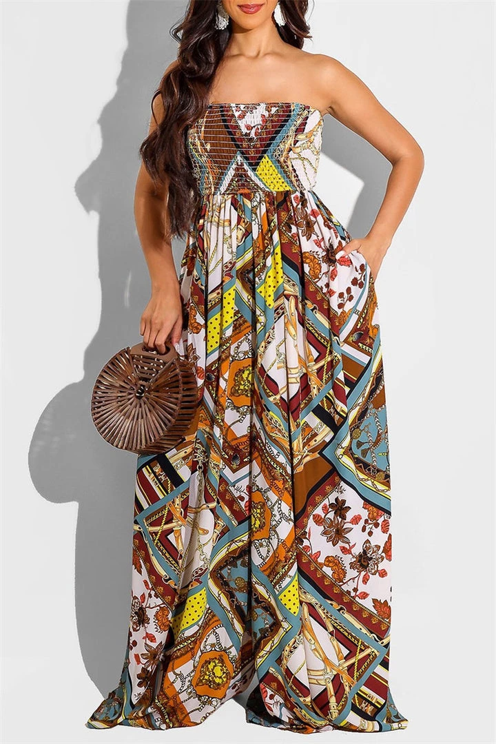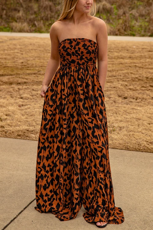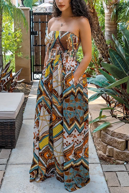 Now this…this..this one piece jumpsuitâ€?we simply can’t wait to see you in it. If you ever wanted to stand out effortlessly, well here is your chance. Jumpsuit is not see through Tube strapless neckline Ruching details on top with amazing stretch Runs True to Size with lots of room Stretchable waistband. Only stretches on the waistband.