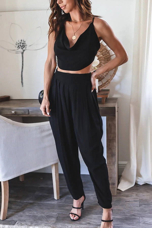 Meet the Cowl Neck Cami… a cropped cowl neck cami top with a lightweight, airy gauze fabric and a delicate mixture between casual and dressy. You’ll love her soft cowl neck balanced with her fiery spaghetti cross-back design. We love her paired with our Pleated Pants for a pulled-together look that absolutely loves a denim jacket.