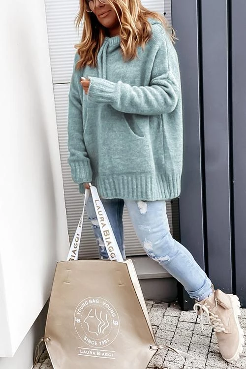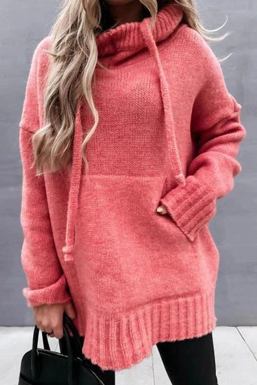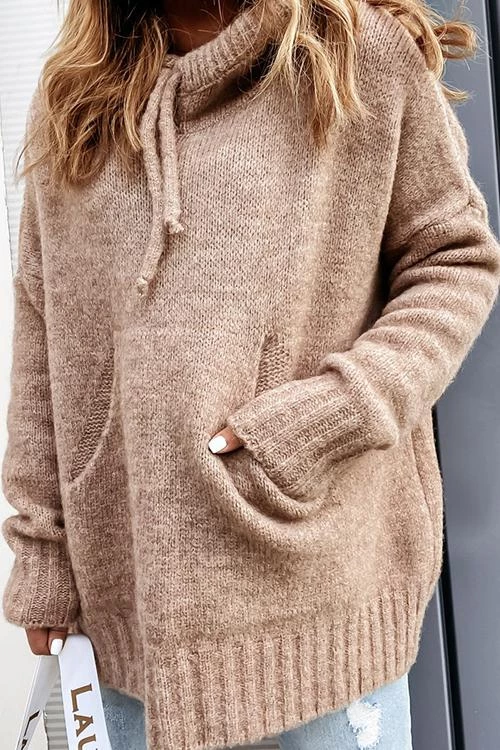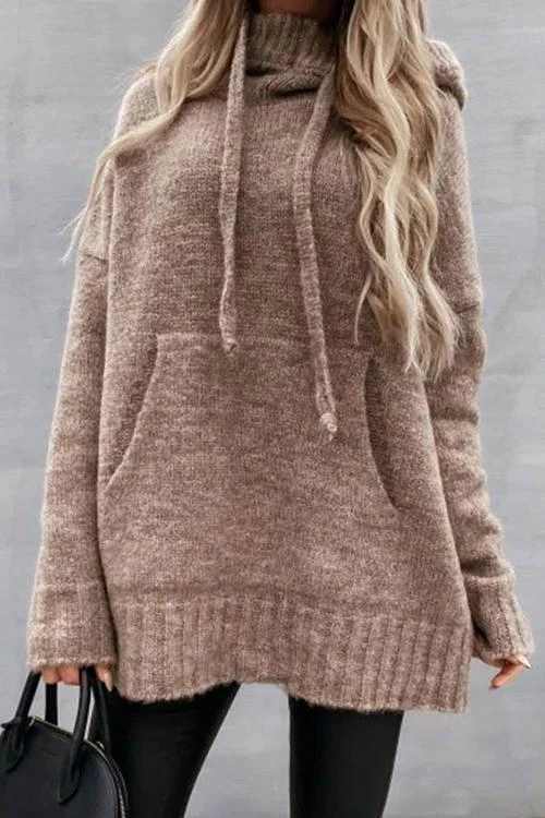 This Sweater Hoodie is impossible to resist! Soft solid knit shapes this cozy hoodie with side pockets, drawstring, and ribbed accents on the drop sleeves, kangaroo pocket, and hemline.The relaxed silhouette of this long-sleeve sweater hoodie features a knit.