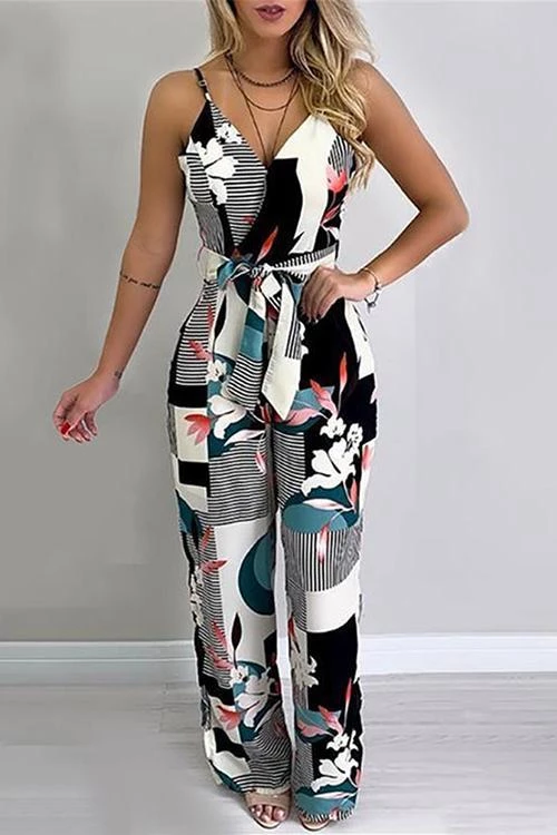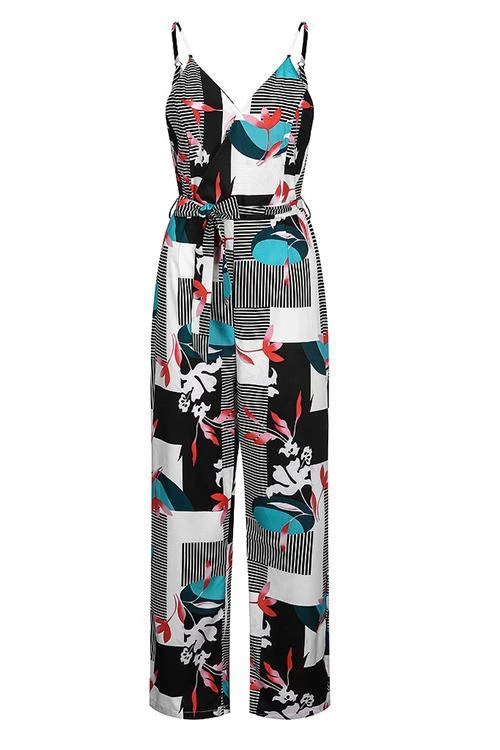 Stroll down the beach and look cute doing it in the Tie-Front Culotte Jumpsuit! Breezy woven fabric, color block floral, shapes this jumpsuit, a princess-seamed bodice, and an overlapping surplice neckline that ties at the waist. A high waist tops flowy culotte pant legs that end at cropped hems.