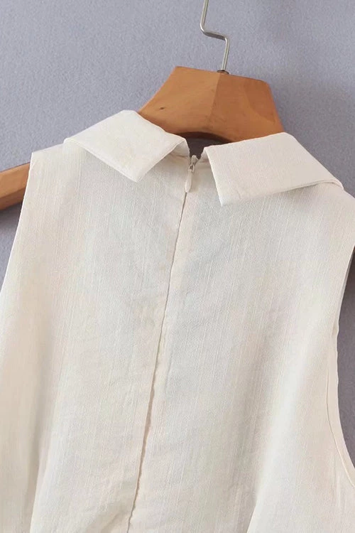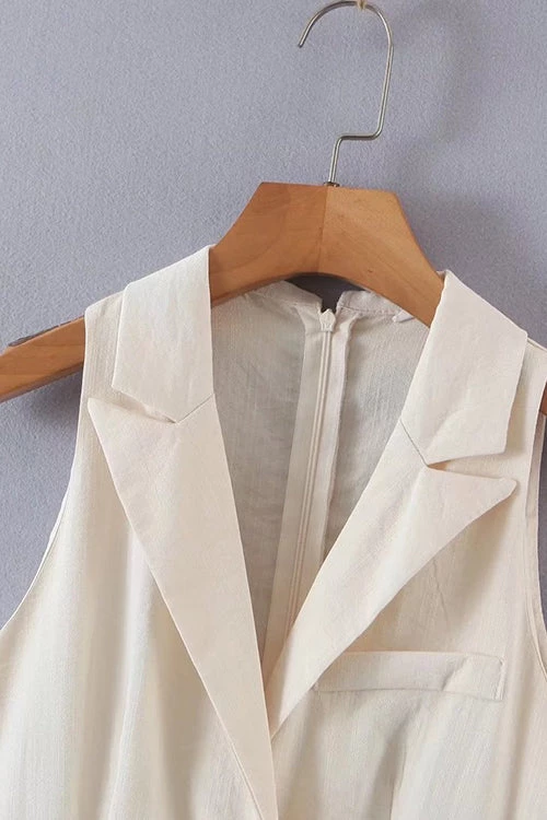 The Playsuit featured a deep v-neckline with a lapel edge, a panel across the bust, slim fitting shorts and a back invisible zip in a woven fabric with lining.