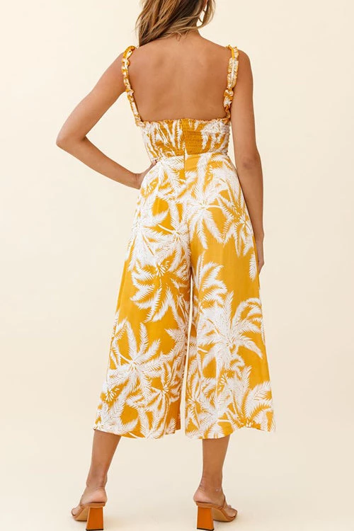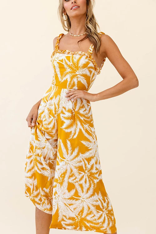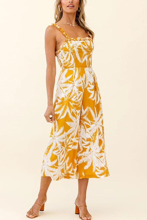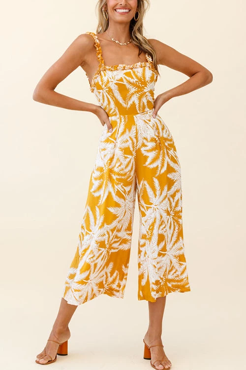 You’ll feel like a tropical escape in our Magdalene midi jumpsuit. Featuring the cutest frill straps and shirring in the back for a comfortable fit. We are loving the on-trend wide leg style. Pair it with a straw tote and sandals for a casual-chic look that’ll have you dreaming about jetsetting to Tahiti.