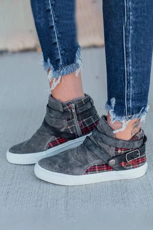 Be the first to review “Levency New In Plaid Buckle Zipper Flat Boots” Cancel reply
