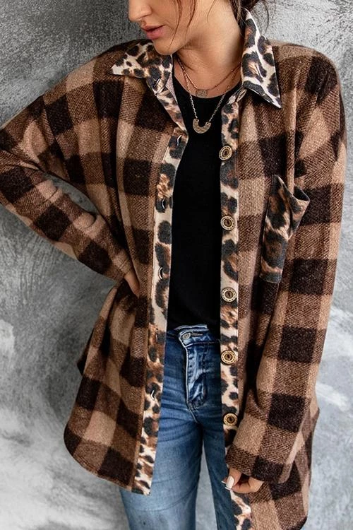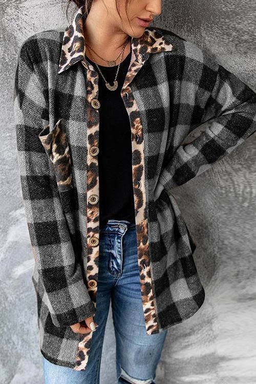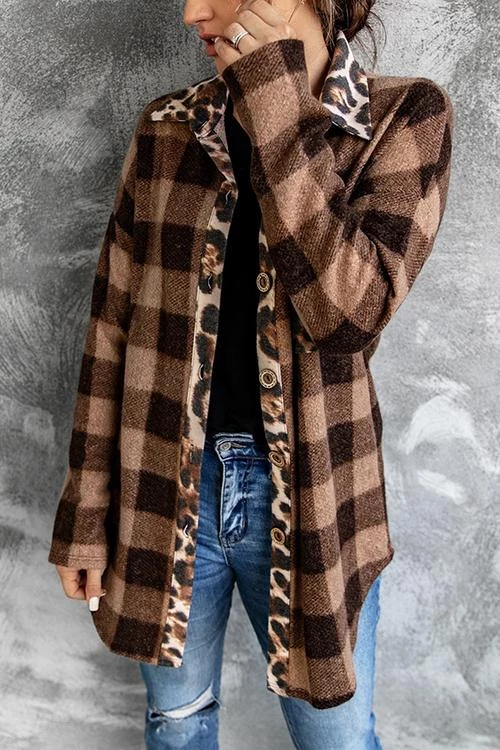 Mocha mix plaid top and cheetah, can’t go wrong with that. Loving the cheetah detail along the neck and button up line. Throw it on with your favorite pair of jeans or leggings. Wear it open or closed.