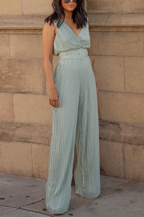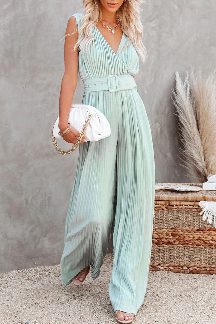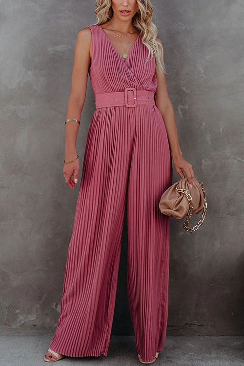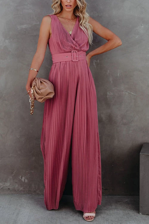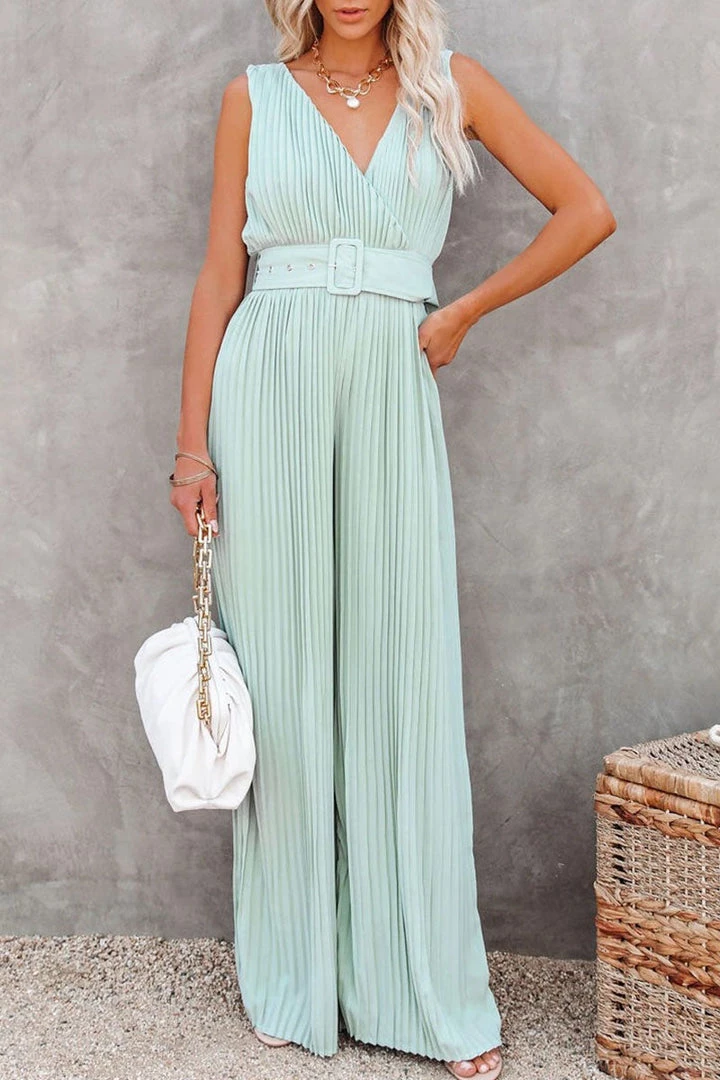 Looking for a versatile and stylish outfit that won’t require too much effort? Look no further than the Jane pleated wide leg jumpsuit! Made from a smooth fabric, this jumpsuit features a flattering v neckline, pretty pleats all over, and stunning wide legs. It’s finished with a tie waist for an extra touch of glamour. Perfect for any smart or casual occasion, this jumpsuit is sure to make you look and feel fabulous.
