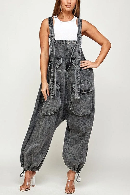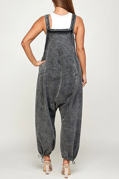 This super stylish edgy chic piece is sure to turn heads and can be styled with heels or sneakers.Rock your Overalls/Jumper with boxy crop tops, bralettes, bodysuits and fitted tops. Features drawstring adjustable cuffs adjustable overalls. Very high quality statement piece. This piece can go from weekends, to casual days, to a fun night out. Sizing is very open; fits regular and plus sizes (has stretchy waistband and runs oversized).