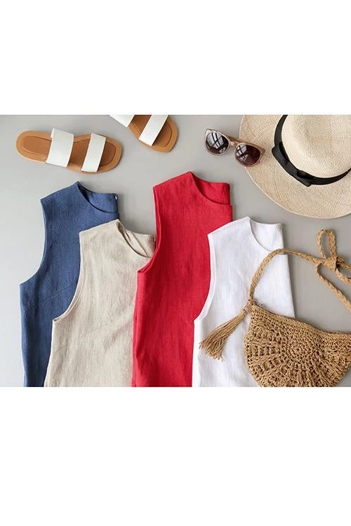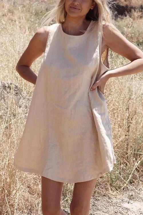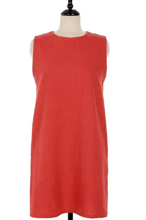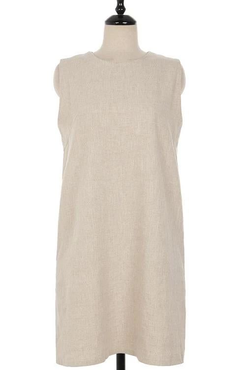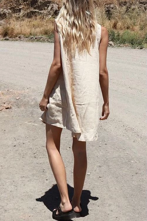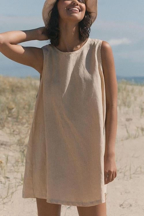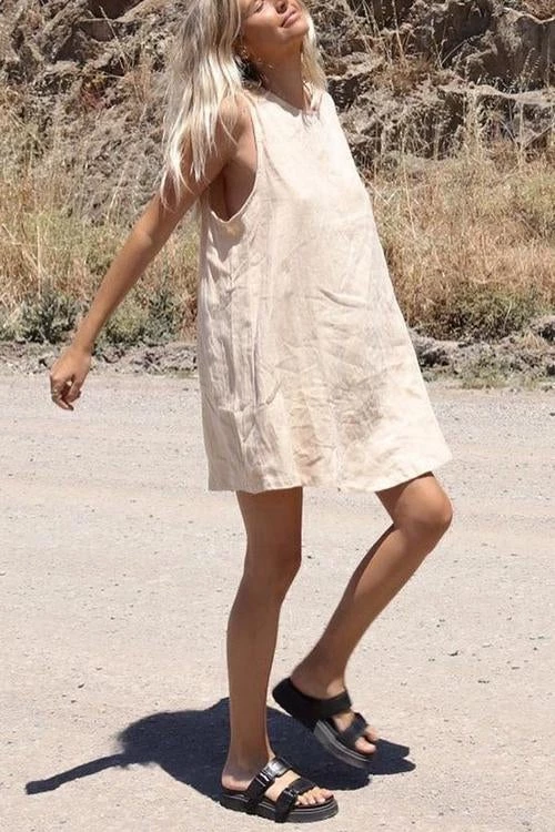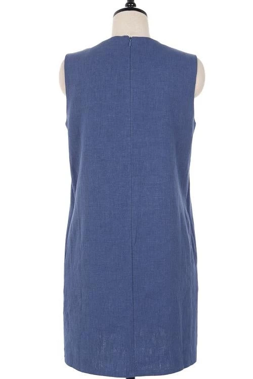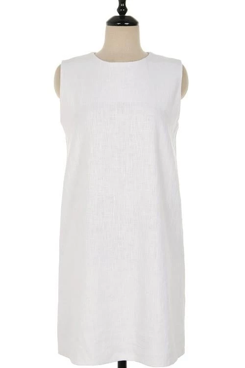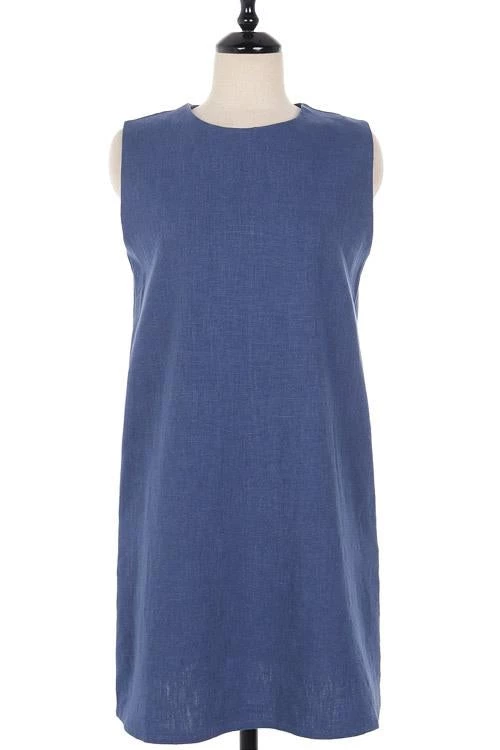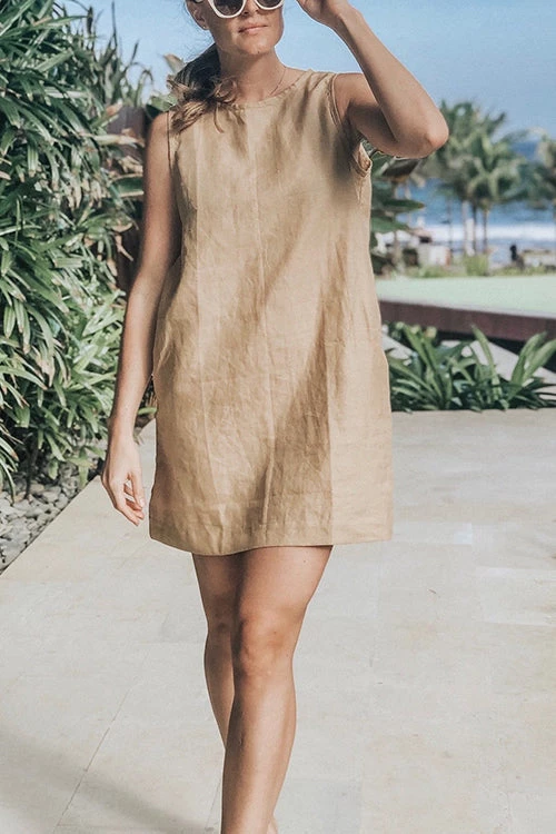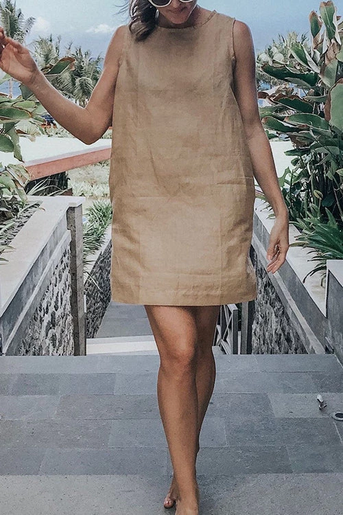 Take your casual look up a few notches with the Sleeveless Mini Dress! This dress that has a crew neckline and a sleeveless bodice that lends a muscle tee-inspired fit. The shift silhouette has hidden side seam pockets and continues down to a raw-cut mini hem.