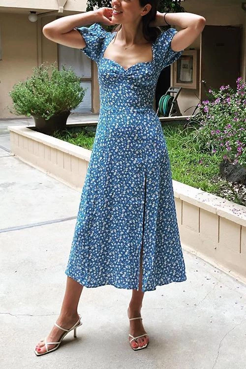 WE have been feeling gravitate towards long flowy dresses with a good thigh-high slit and the floral print. WE like how it looked buttoned up on this day paired with some transparent sandals.