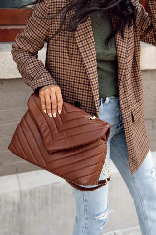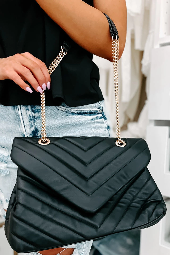 Take your purse game up a notch or two with the Vegan Leather Quilted Shoulder Handbag! Carry all your essentials for work, travel or a night out in this must-have purse. It’s a  designer dupe that will standout wherever you go. Soft and supple faux leather shapes this quilted bag with shiny gold hardware, a rectangular construction, and a flat-bottom design. Open the fold-over top and reveal a spacious interior with divider, zippered pocket and a sidewall pockets. We also love the gold chain strap with faux leather for a chic finish.