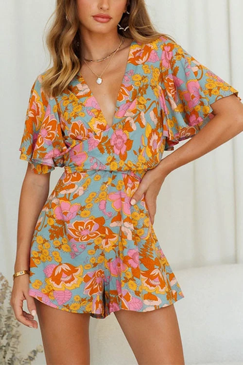 The Holding On Tight Playsuit is perfect for days in the sun and exploring the sights of Bali! Style yours with lace-up sandals and tousled waves for an effortless, sunkissed look. Floaty playsuit, true to size Plunge neckline Short angel sleeves Floral print throughout Open back with nape button closure Invisible back zipper Not lined Waist tie Light weight