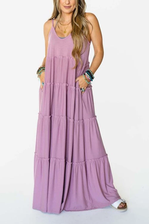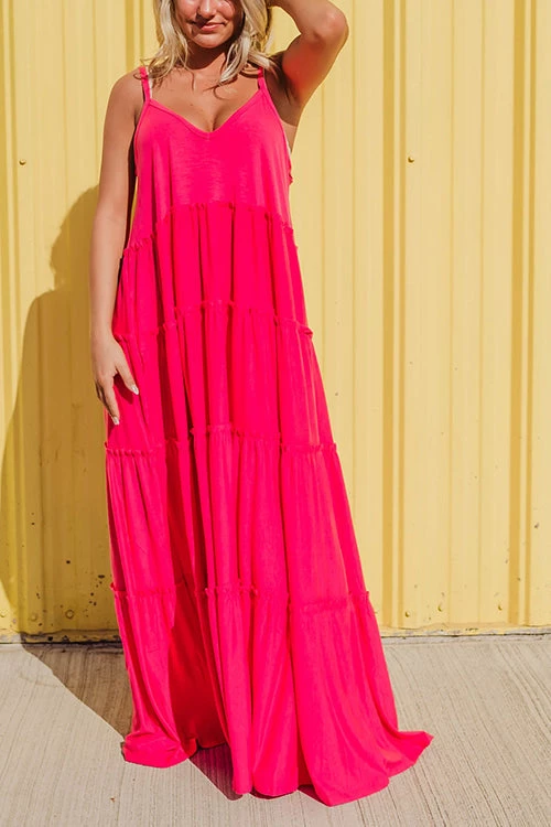 There is no better weekend dress than this beautiful maxi! Gorgeous and comfortable, Villa Tiered Maxi is a must-have for this season. It features a V Neckline, adjustable spaghetti straps with pockets. This flowy maxi will become your go to dress for your everyday wear. Â Pair with your favorite sandals or flats for a cute, flirty day of fun.Â