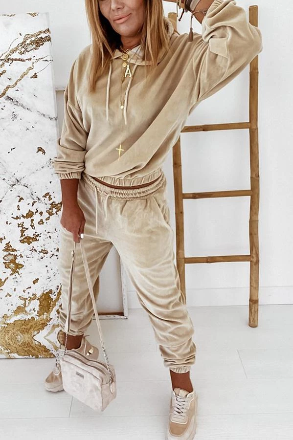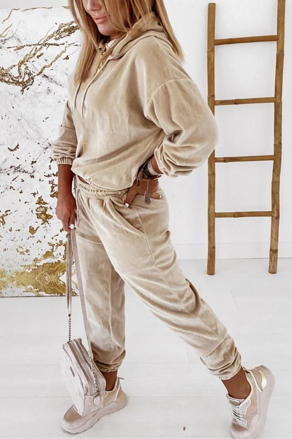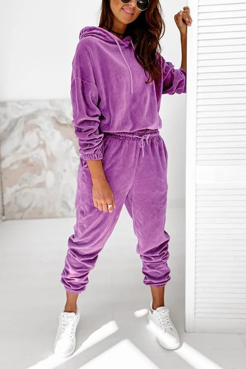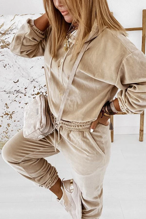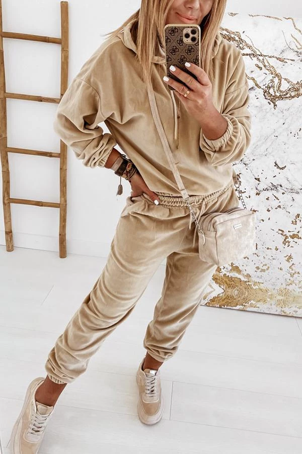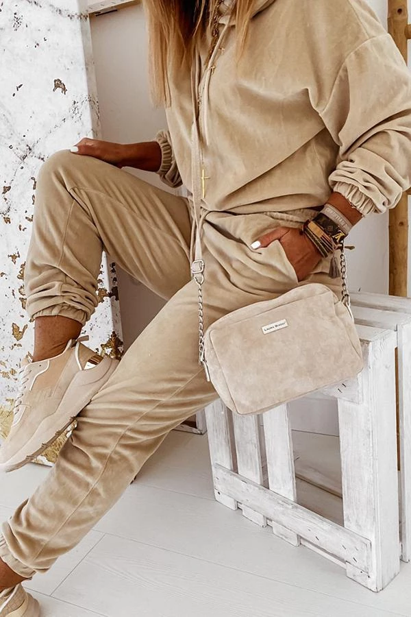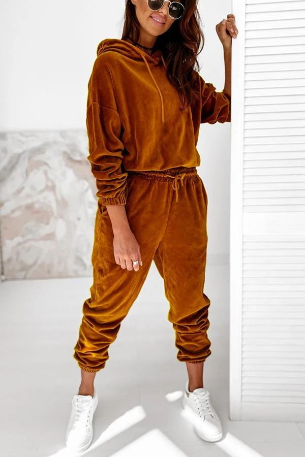 Everyone loves a velour tracksuit! Wear it to town or out on the town. Both the hoodie and pants have drawstrings. The pants also have an elastic waist and elastic at the ankles. This is also the perfect casual but cute holiday outfit. Perfect Pairs- co-ordinating outfits is seriously in right now, which means you can cut down on precious prep time with this velour loungewear set. Team with trainers & a crossbag for a daytime chic look!