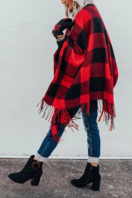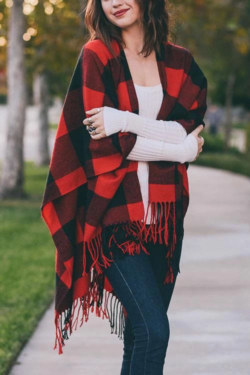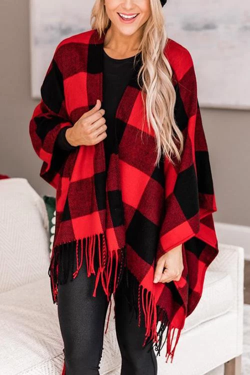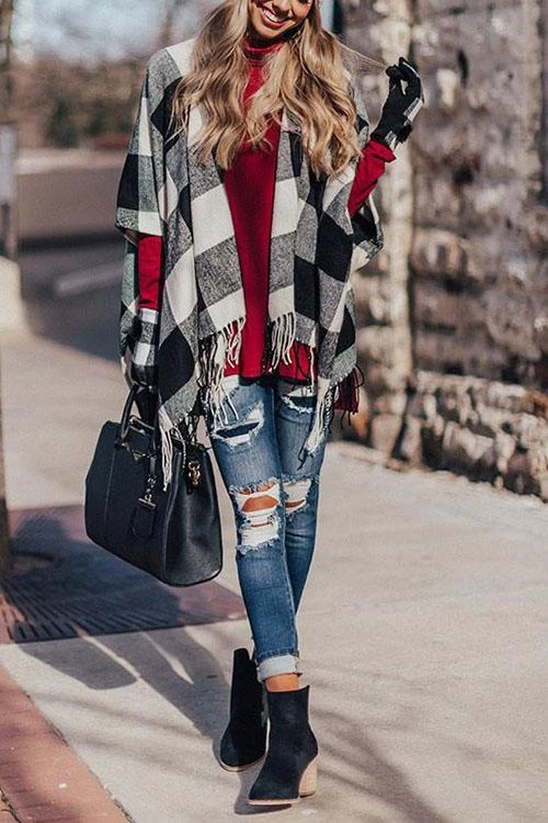 This sweet poncho is such a timeless choice for fall or winter fun! We love the gorgeous black and red material it’s such a cute combo. The material is so wonderfully soft and easy to love wrapping up in all day, plus the oversized fit makes it easy to drape over any graphic tees or blouses. This poncho also features a relaxed fit and an open bust! Pair this cardigan with a layering tee, distressed jeans, and stylish boots for the perfect look!