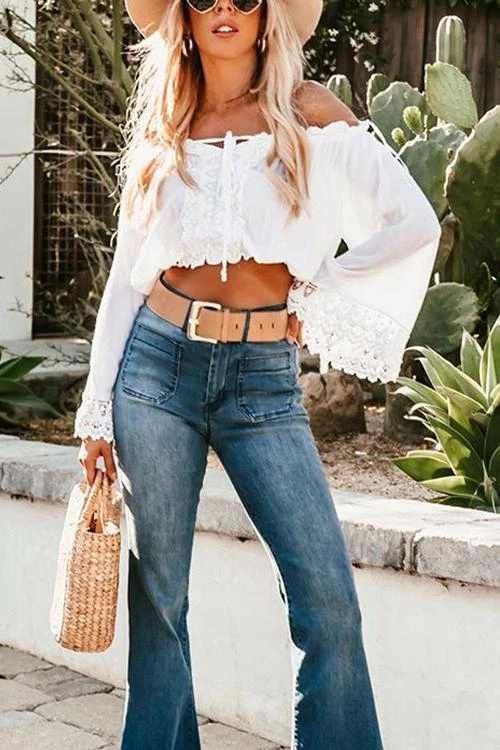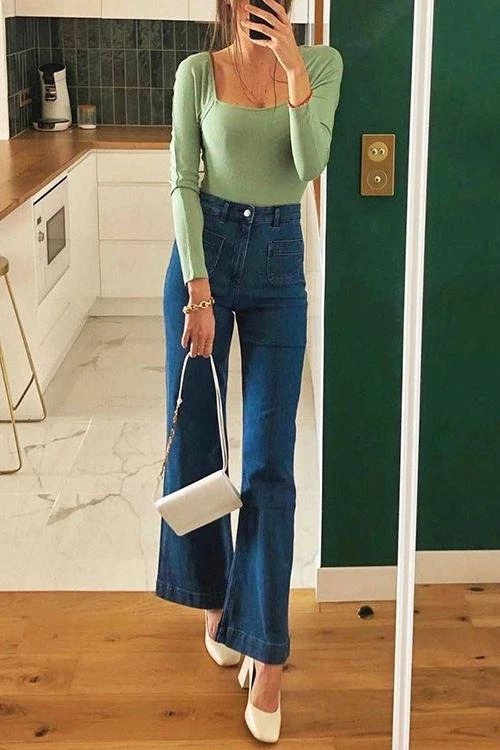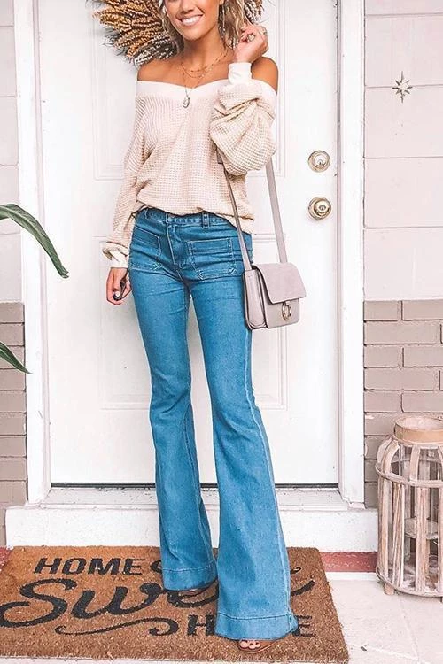The bells bottom flare pants can show your long legs very well.Vintage high waisted jeans slim your sides,making your waistline look smaller instantly.