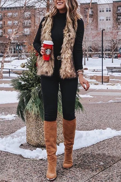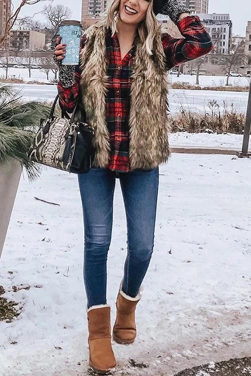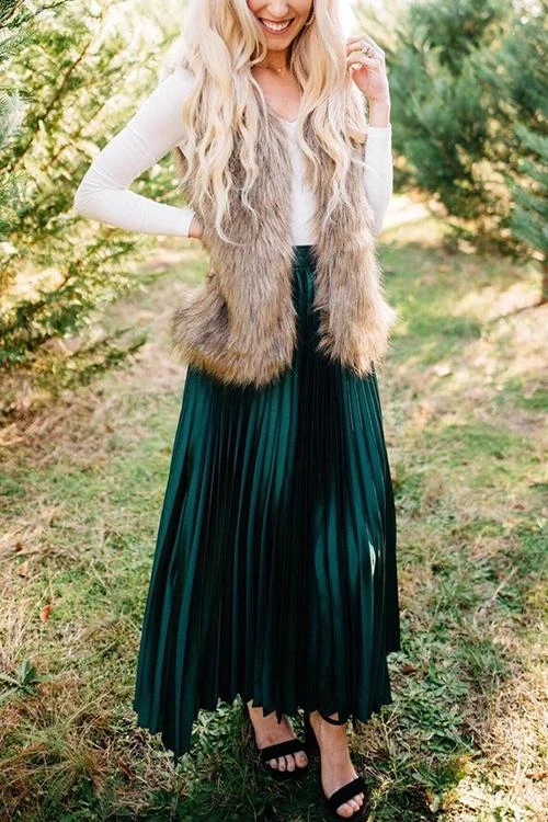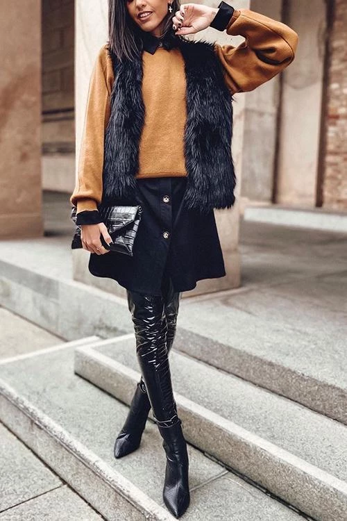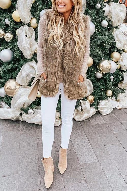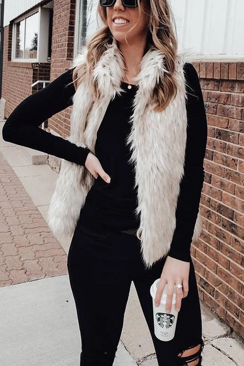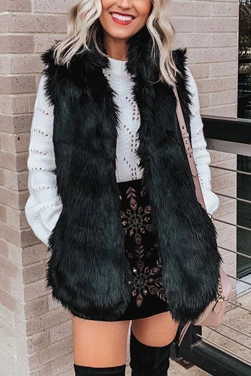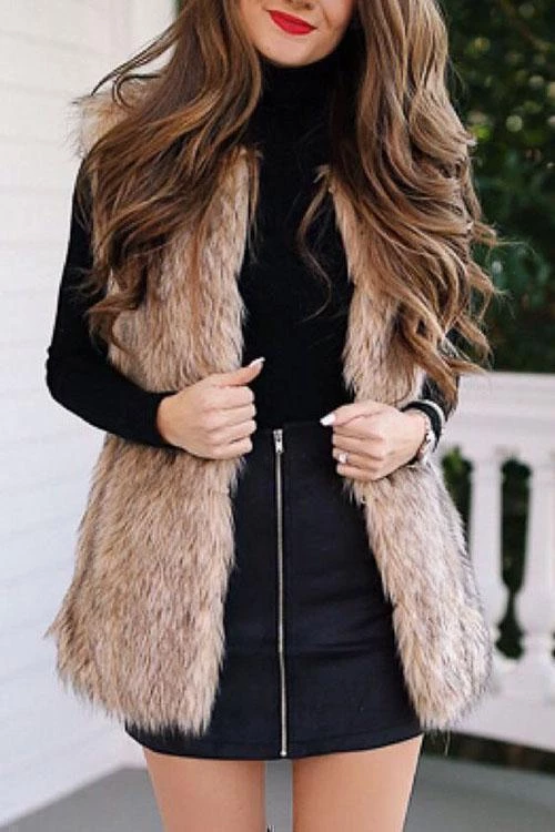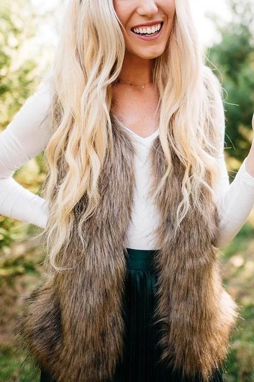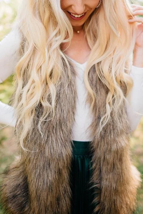 Faux fur sleeveless jacket has two hand pockets make your hand warm in cold days