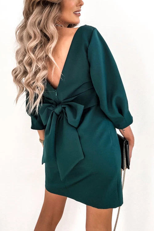 This short dress is sure to make the wearer the diva of the party, Princess seam enhances a flattering silhouette, Low key boat neck design, puff sleeve and the v shape backless with bowknot is very sexy and eye-catching, Designed to make the wearer feel the focus of all and suitable for all sexy occasionsÂ