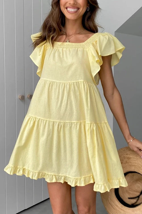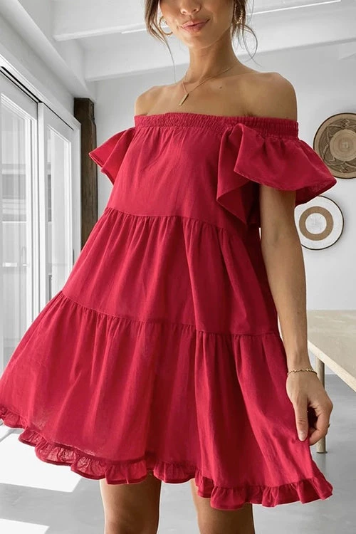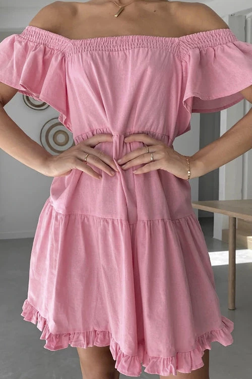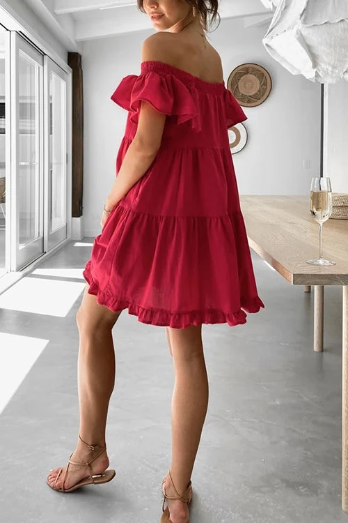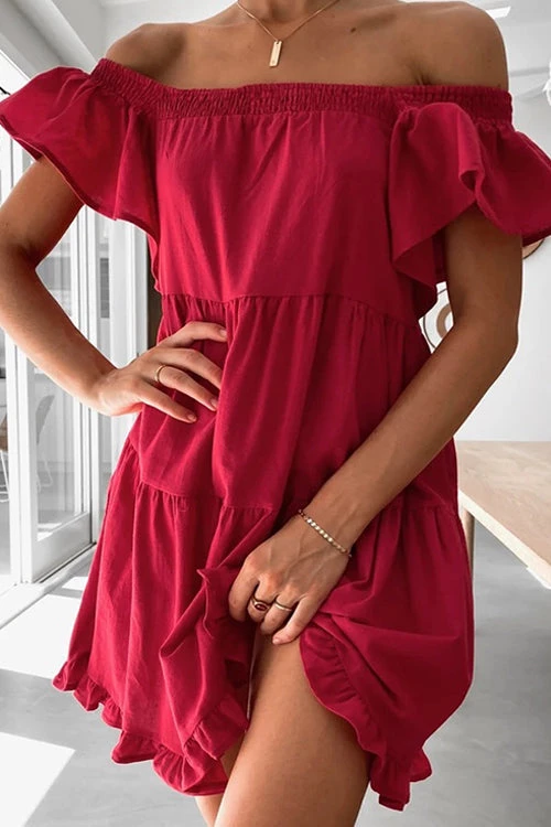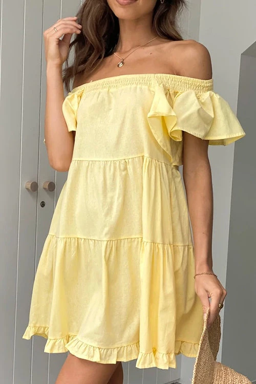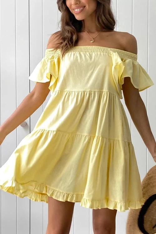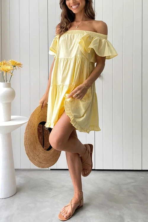 Feel beautiful and fresh this season in the Dress! Paired with gold accessories and cute shoes, all eyes will be on you! The Dress feature -Tiered style -Can be worn on or off the shoulder -Frill detailing on sleeves -Elasticated around shoulders -Side pockets