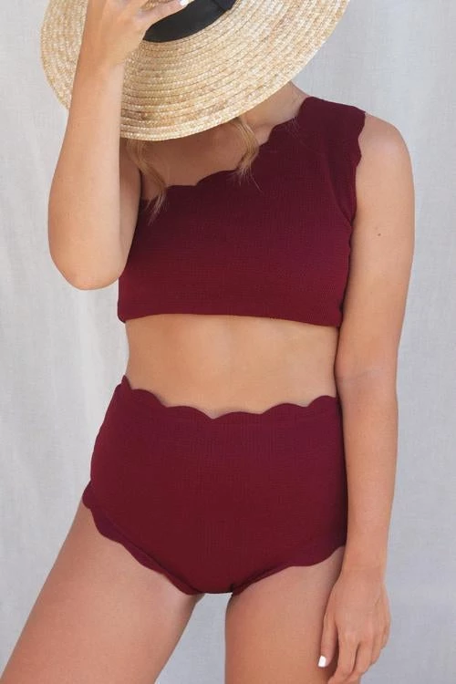 This high waist burgundy bikinis is amazing because it´s scalloped.And the fact that´s scalloped makes it more figure-hugging. It´s the perfect bikini to wear to the pool or in the afternoon.What do you think?