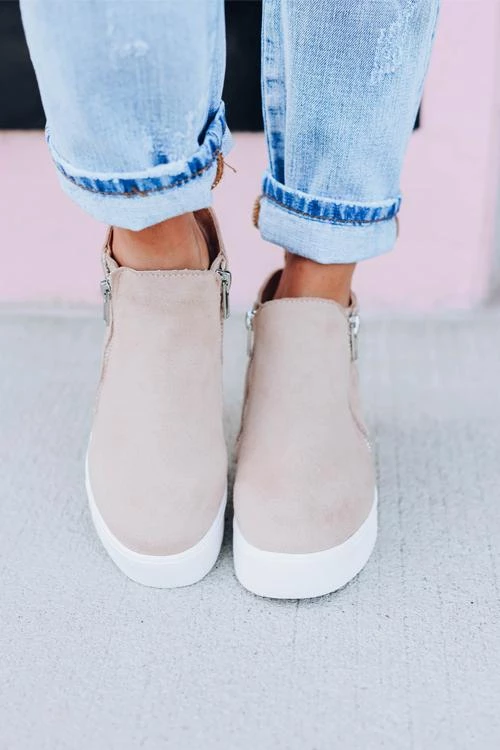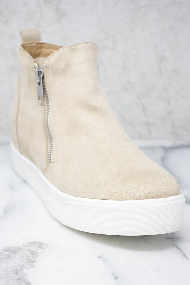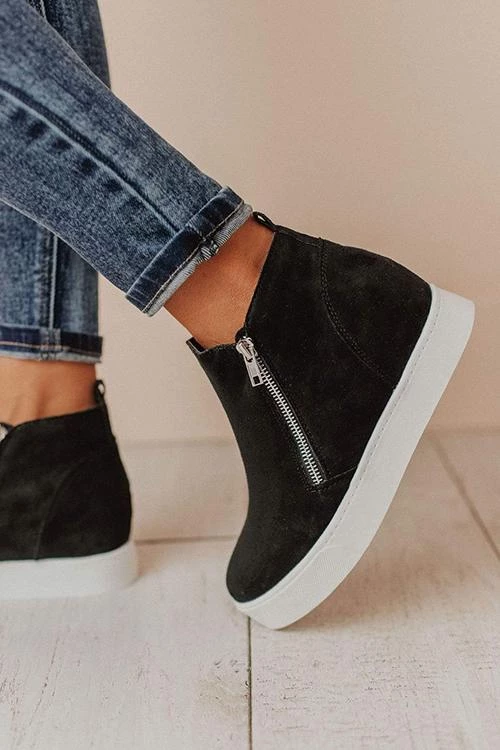 These darling Zipper Wedge Sneakers feature a hidden wedge sole, quality materials and convenient dual side zippers. Universally flattering and crazy comfy, say hello to your new favorite sneaker!
