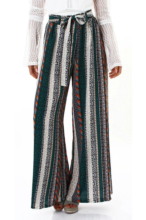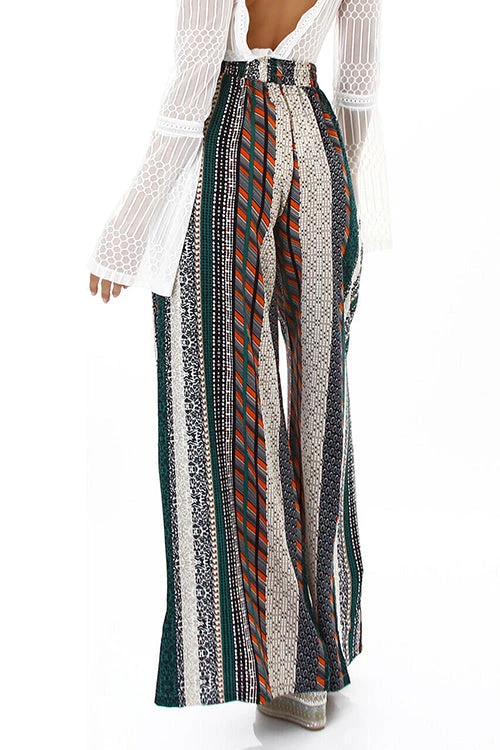 A stylish way to sashay into your next getaway, pair these breezy, cover-up pants with your favorite swimsuit for instant, chic style. An eye catching striped printed wide leg pant in easy comfortable fabric! High waist Full elastic smocked wide waistband Figure flattering silhouetteÂ