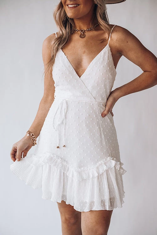 There’s nothing as sweet as as our textured sheen Dress! This style has a crossover V neckline, adjustable shoulder straps and an invisible back zip. It also has belt loops, a complimentary belt and a ruffle hemline. We’re getting real Grecian vibes, so style yours with a gold cuff, tousled braids and a strappy gold heel!