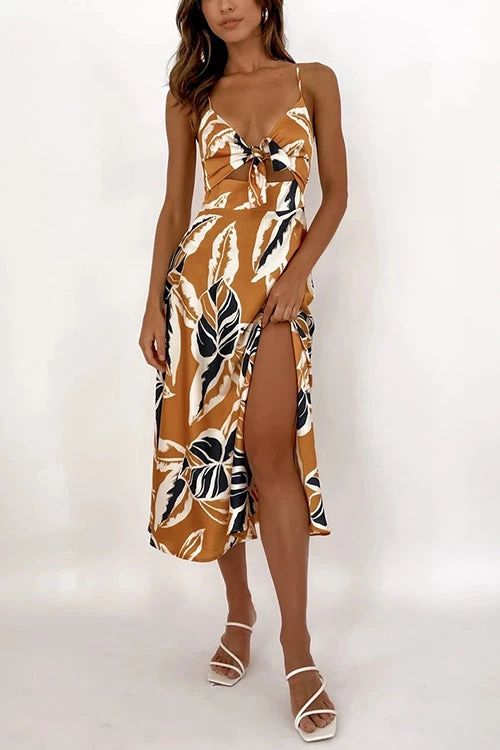 DETAILS Dreamy is an understatement when it comes to our Dreamers Midi Dress, the perfect event midi that was made for making a statement. Featuring a flattering tie up bust detail, fitted waistband with stylish cut out and sexy front slit – this dress is not a want but a need! – Adjustable straps – Tie up front – Invisible zip at back – Slit at front