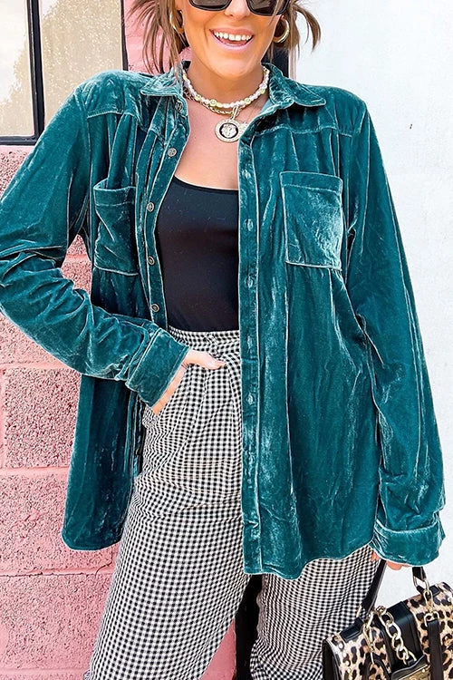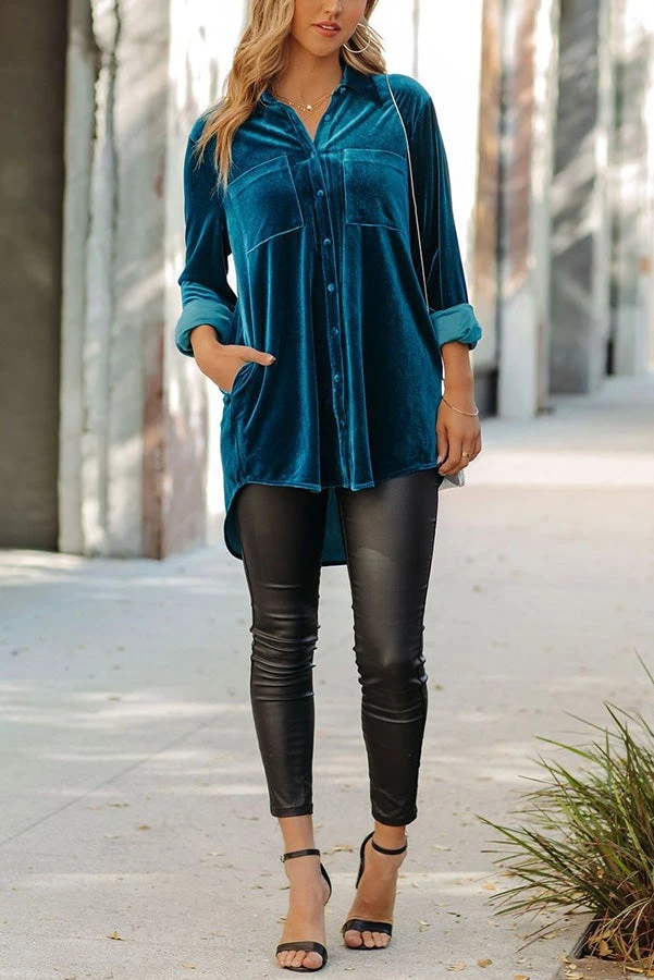 Whether it be for a New Year’s Eve party or night on the town, there is always a good time to wear the Velvet Blouse. Fall into the season with the Velvet Shirt. The highs and lows in the velvet fabric give this beautiful button down a richly elevated appeal. Beautiful enough to wear with a skirt or dress pants but easy enough to pair with your favorite worn in jeans.
